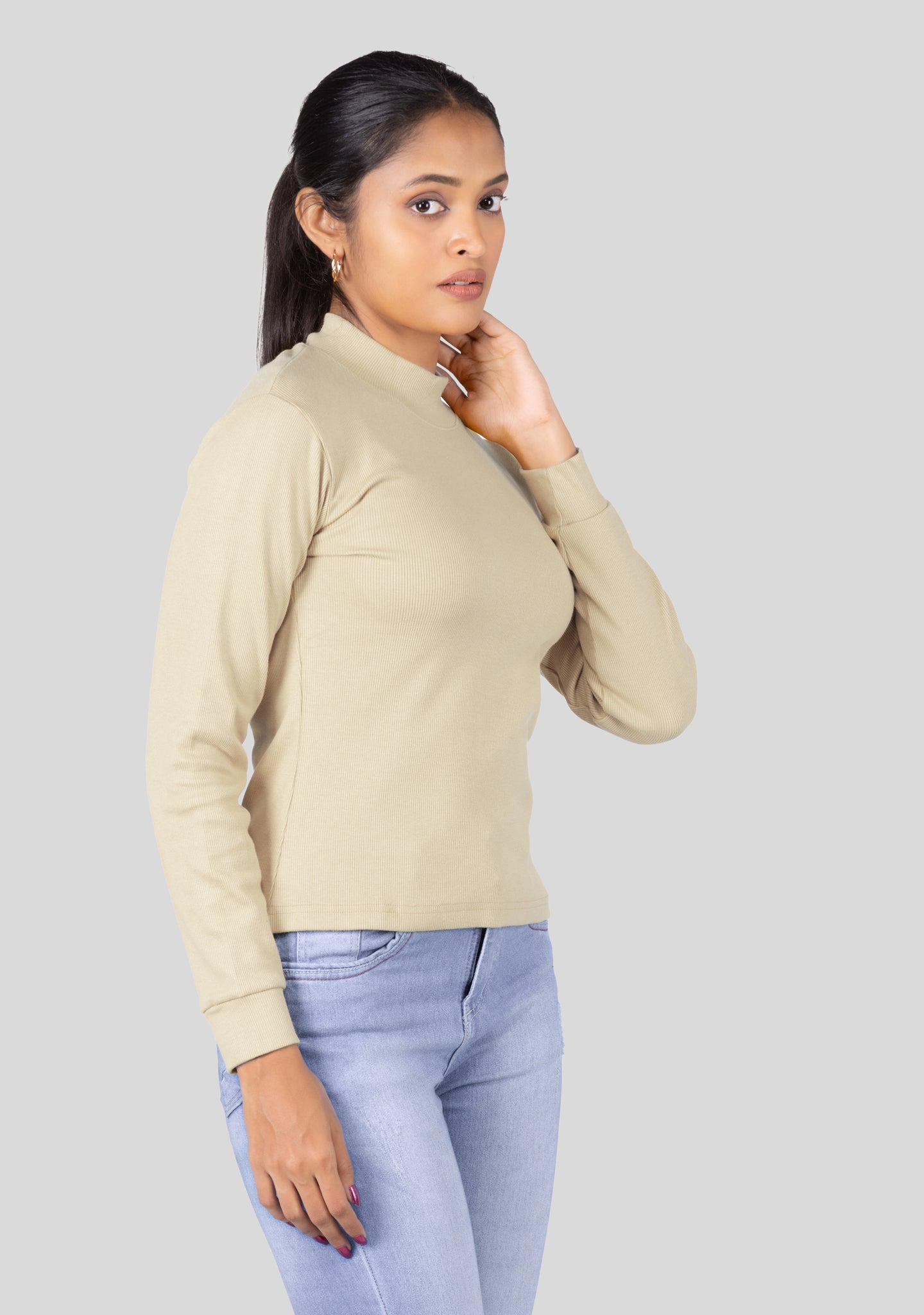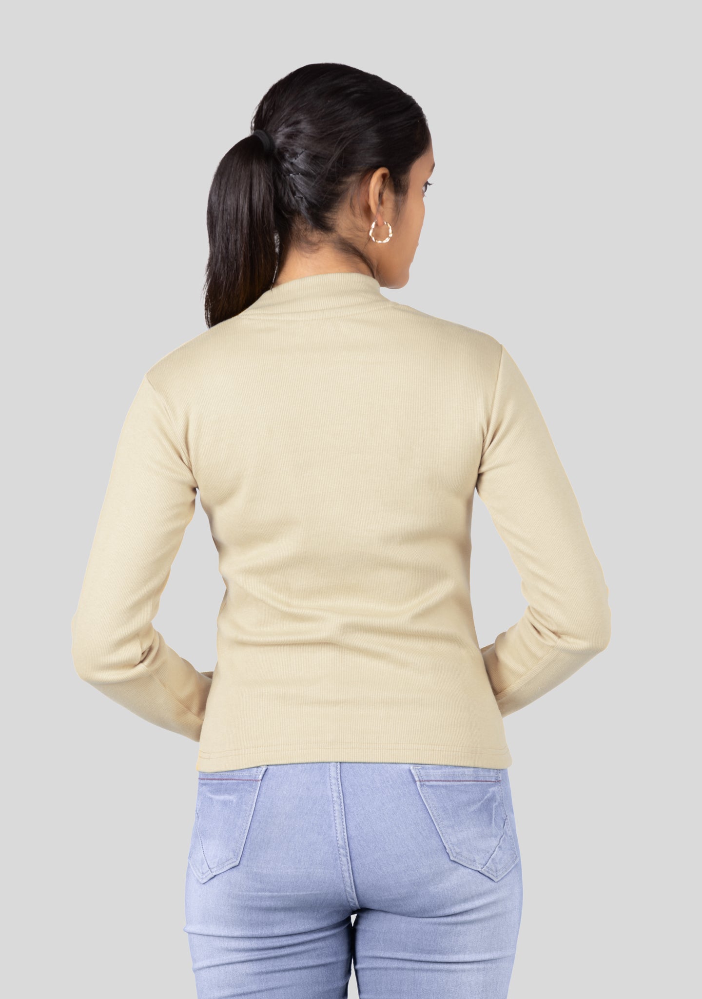 Neckline: Chic mock neck (high neck) that offers warmth and a modern look without the bulk of a full turtleneck.