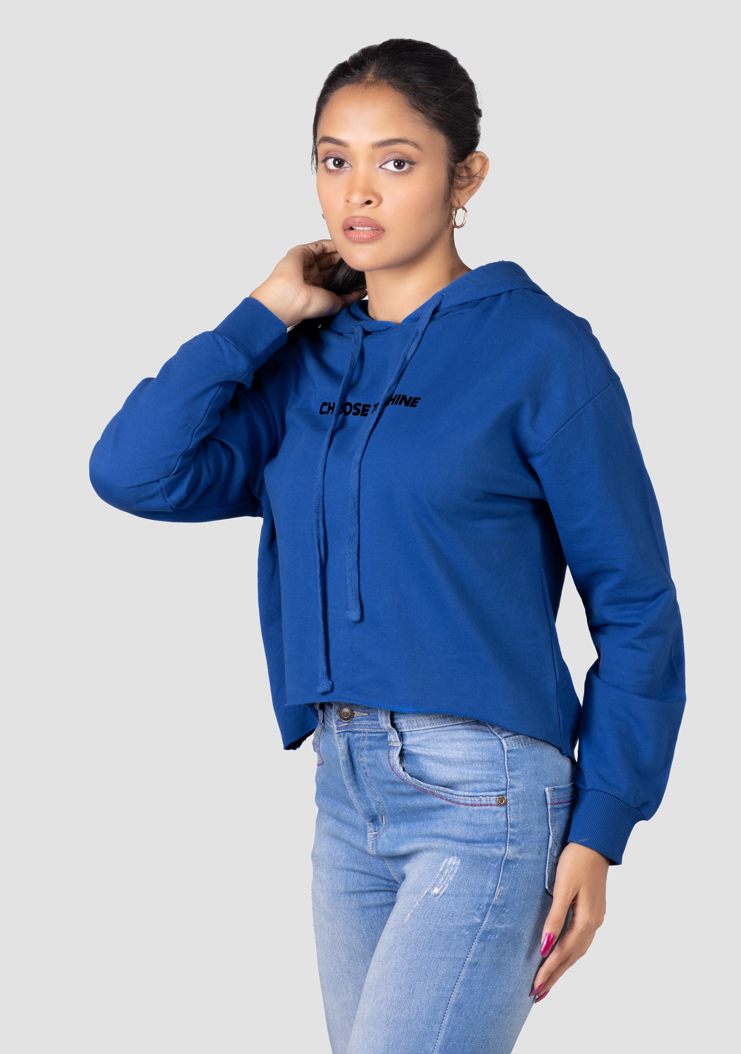 Brighten up your casual rotation with this vibrant royal hoodie. Combining a trendy cropped silhouette with an empowering message, this piece is designed for those who want their streetwear to reflect their inner glow. It’s the perfect blend of cozy comfort and modern edge.