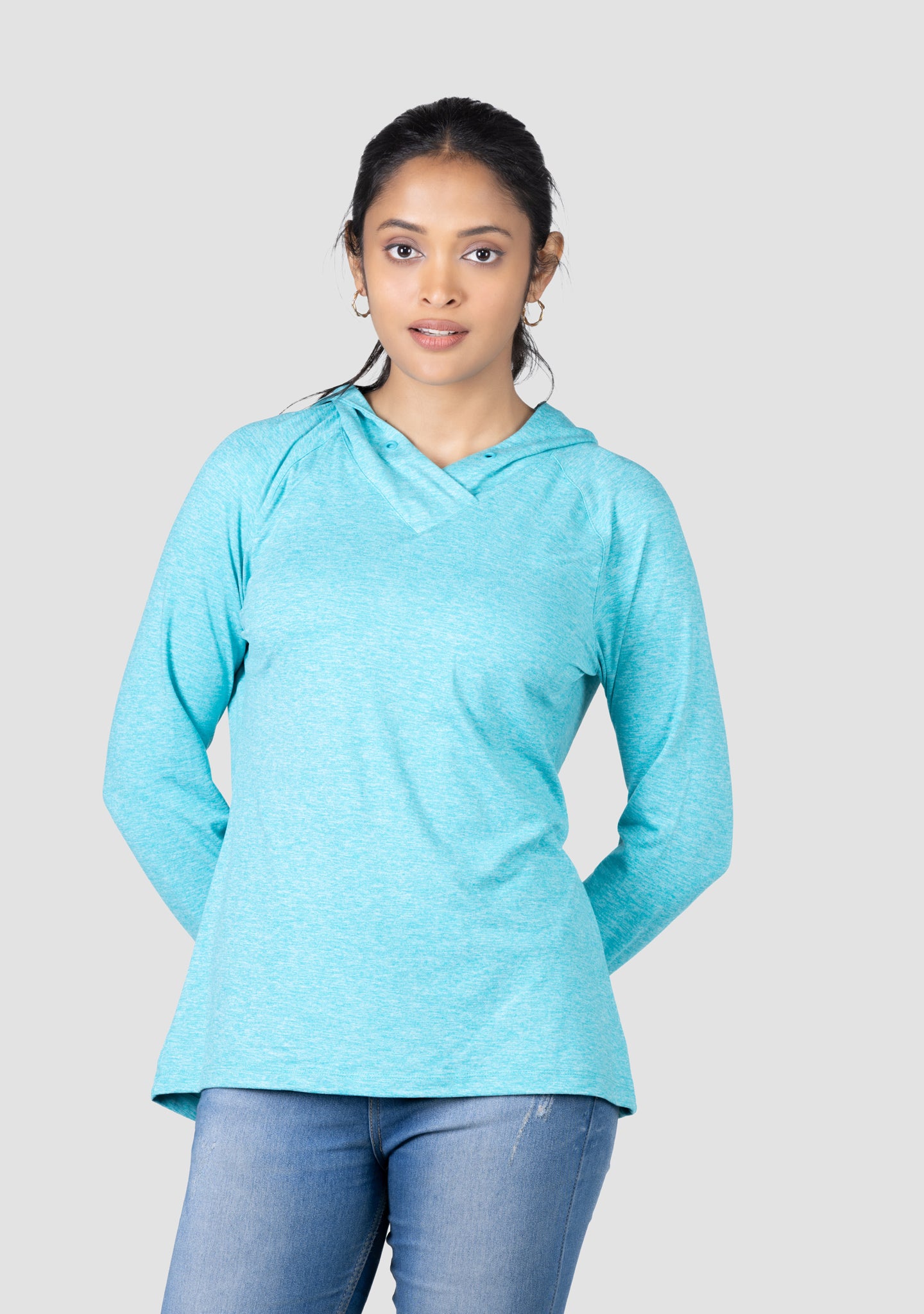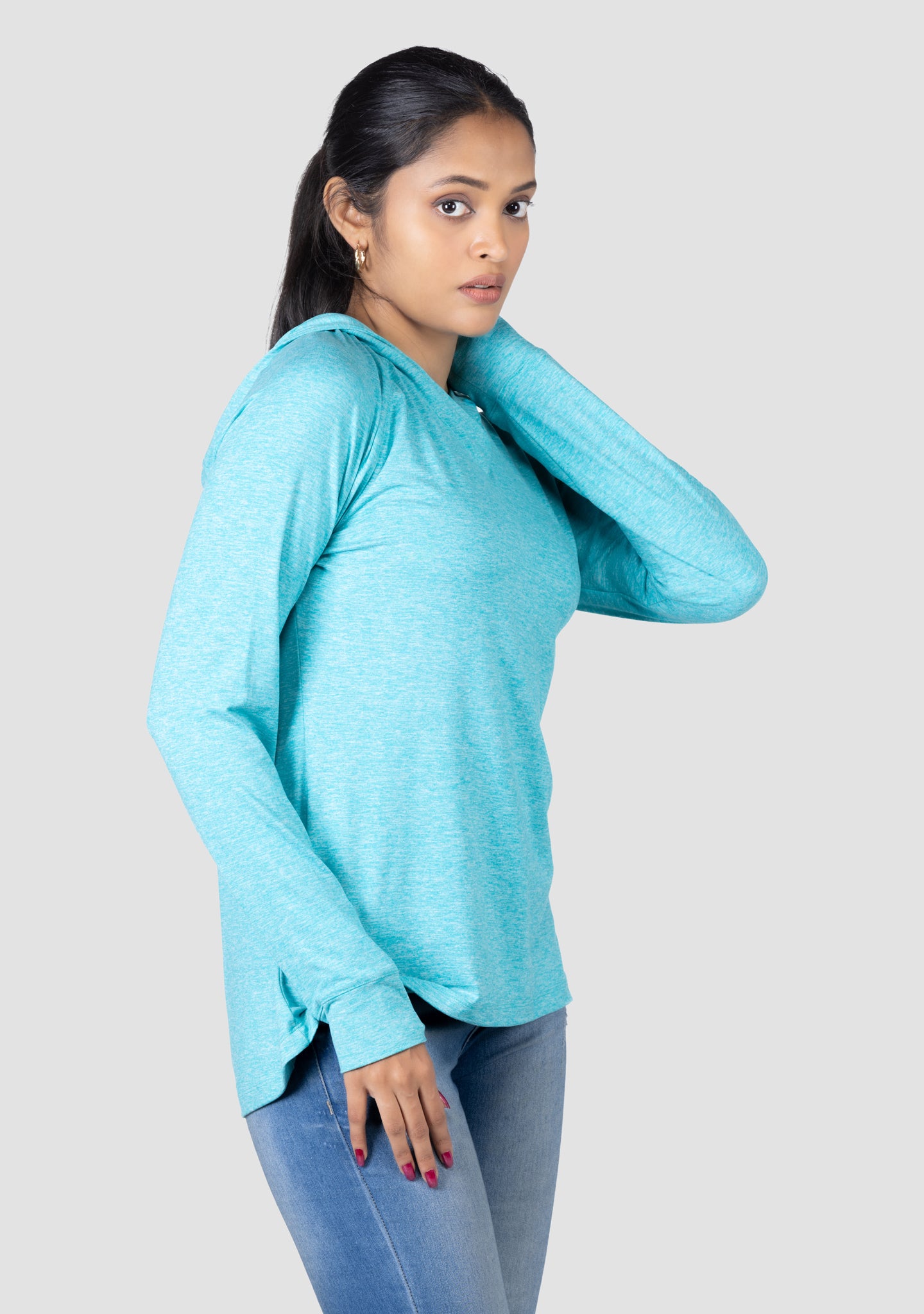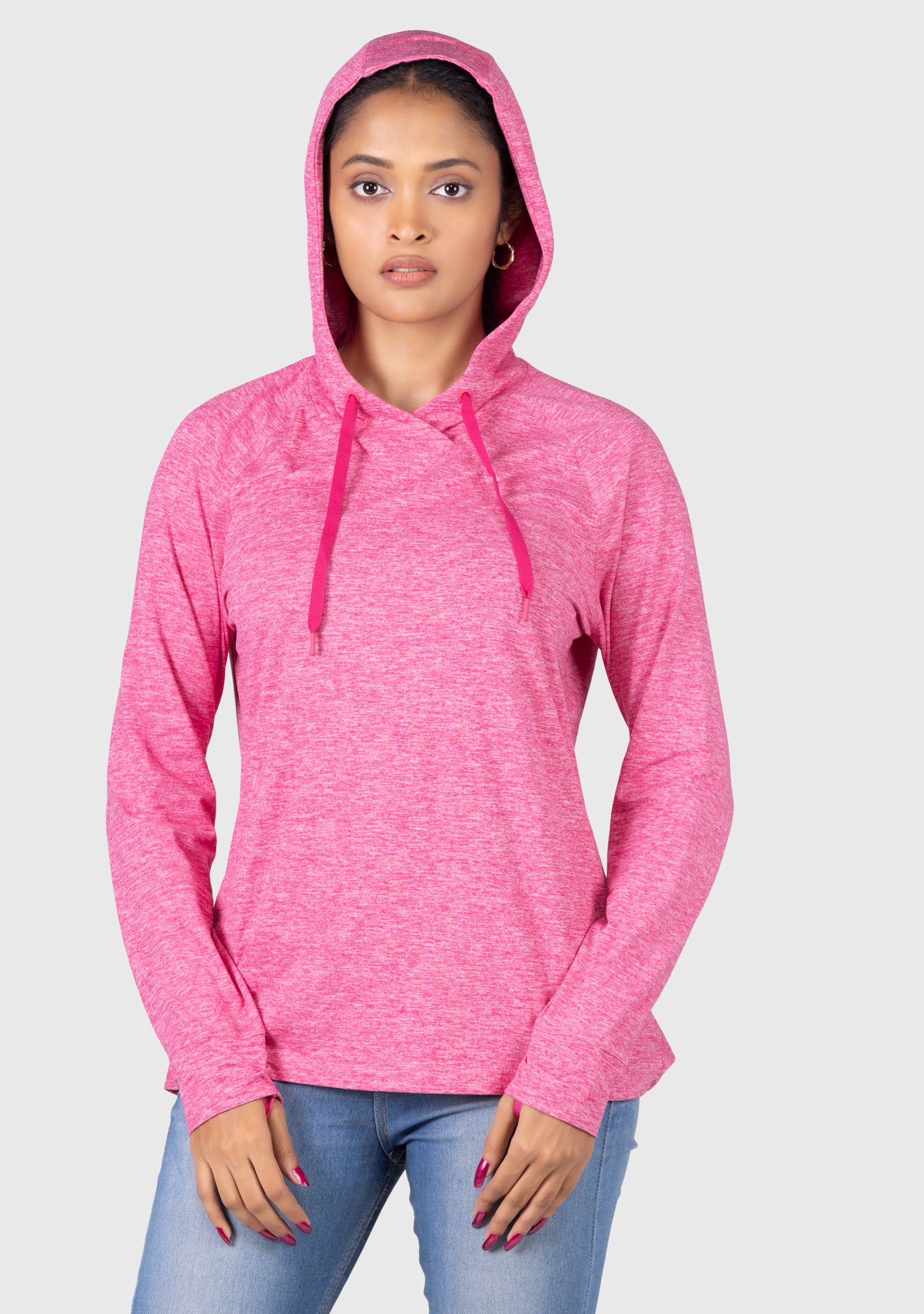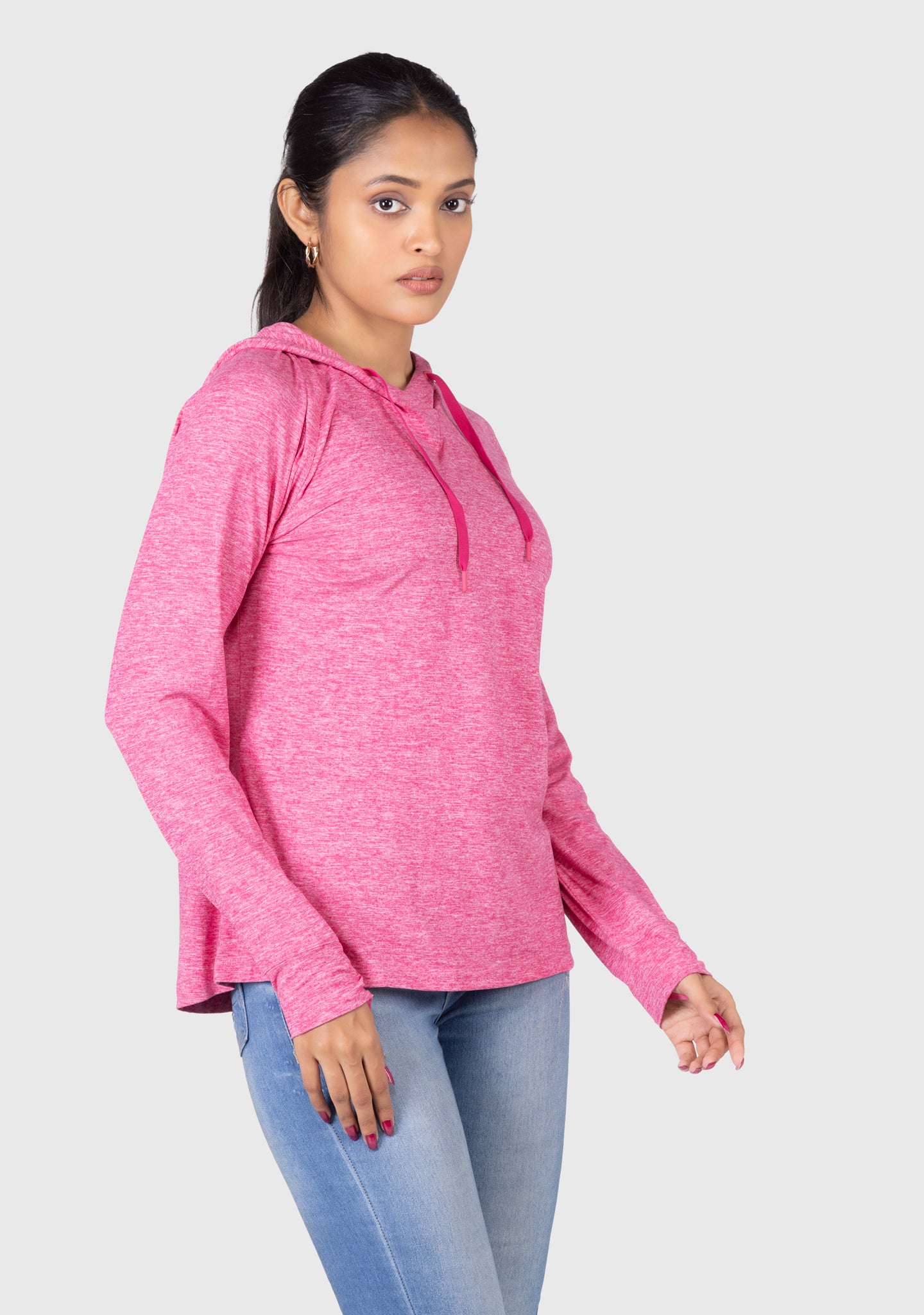 Stay cozy without the bulk in this lightweight, long-sleeve hoodie. Featuring a soft melange knit that creates a beautiful heathered texture, this top is the ultimate "grab-and-go" piece for morning jogs, casual errands, or relaxed weekends at home. It combines the comfort of a t-shirt with the classic utility of a hooded sweatshirt.